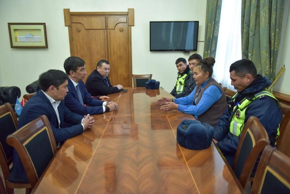 "Азиз Суракматов айдоочунун эрдиги үчүн атайын кол саат тартуу кылды. Ал эми Милициянын патрулдук кызматы башкармалыгынын кызматкерлери Адилет Абдылдаев жана Мирислам Алимбековго, криминалдык милиция кызматынын опер кызматкери Медербек Таалайбековго ыраазычылык билдирди", - деди мэриянын басма сөз кызматынан.