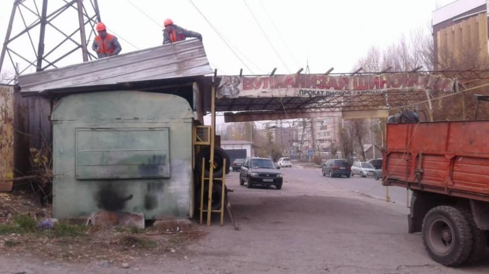 Бишкекте мыйзамсыз коюлган объектилер мэрия тарабынан алынды. Жер пайдалануу жана курулуш башкармалыгынын жана "Тазалык" муниципалдык ишканасынын "Альфа" бөлүмүнүн кызматкерлери уруксаты жок орнотулган желимдөөчү жайдын бастырмасын бузду.